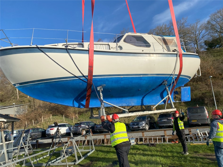 3.Tag billede af båden når den hænger i stropperne så du er sikker på hvor kranmærker skal placeres